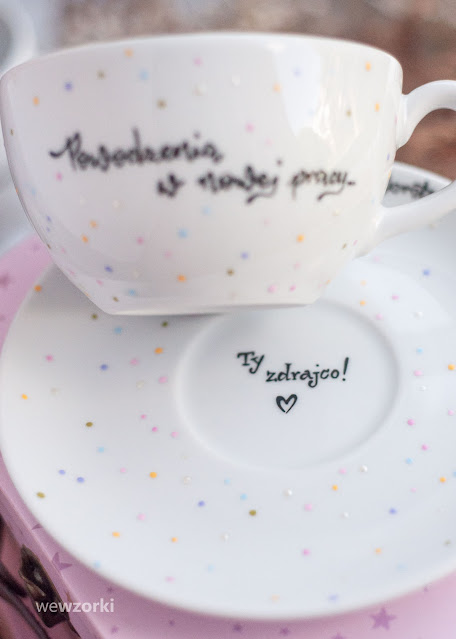 Bardziej osobista dedykacja od spodu na denku spodeczka: